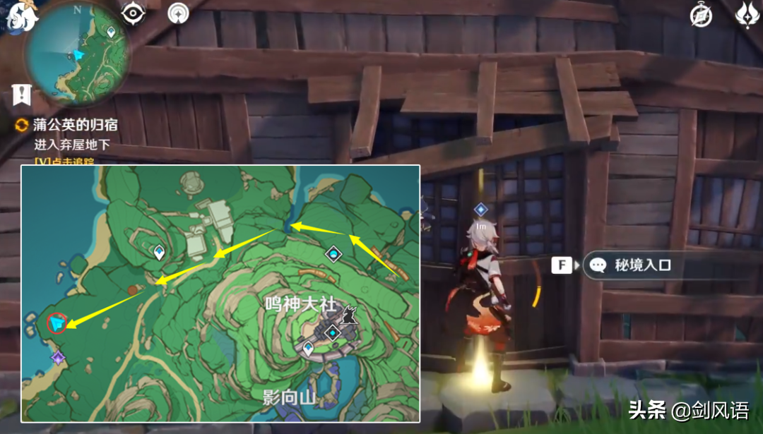2.追寻元素痕迹,跟随元素痕迹一路过去,如图2,来到房子门前,对话进入秘境。