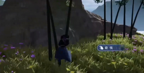 3、紧接着我们来到旁边的竹林,进行砍伐竹子。