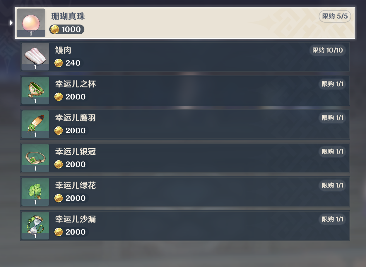 与山城健太对话,选择“看看货”选项,即可进入该NPC的商店页面。可以看到,在该NPC处,每次刷新可以购买5个珊瑚真珠。