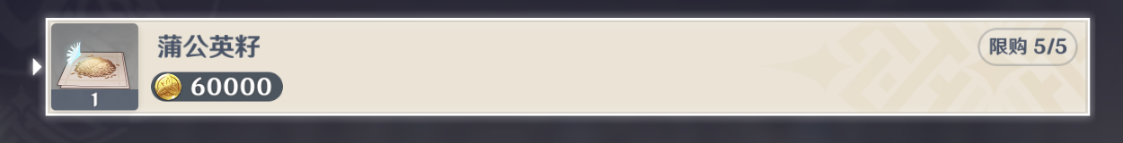但是该NPC出售的蒲公英籽价格十分昂贵,因此如果不是非常缺的话,不推荐在此购买蒲公英籽。