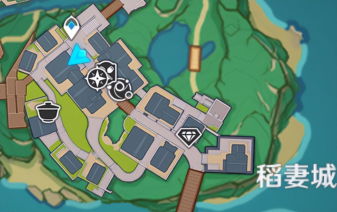 山城健太位于稻妻的离岛处,具体位置如图所示。
