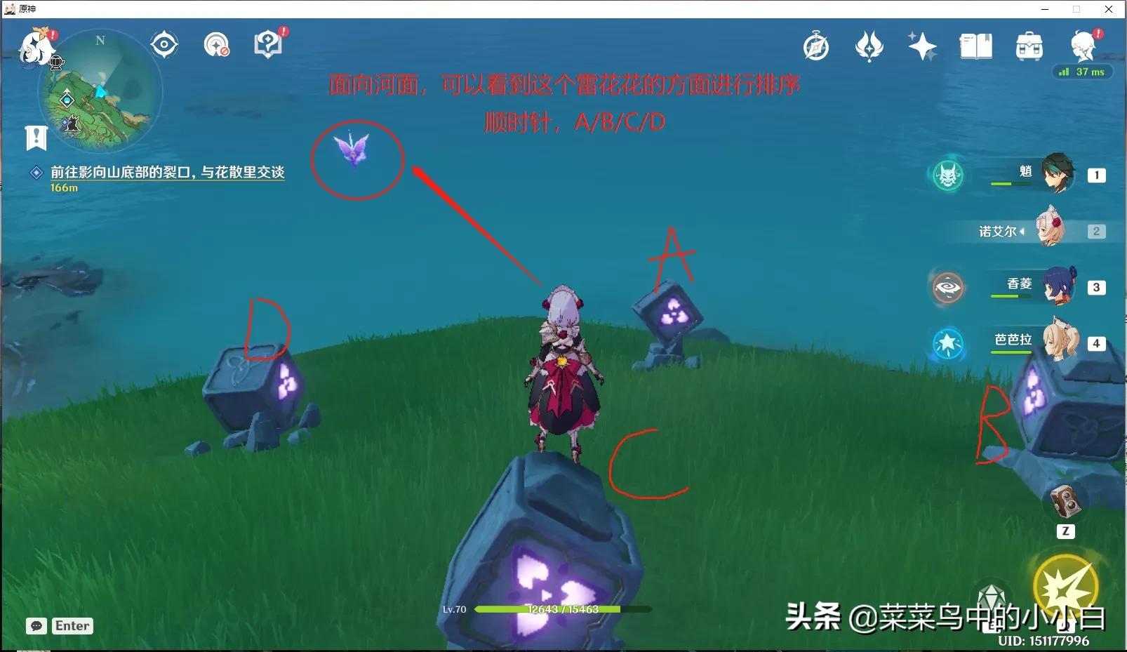 (2)观察A、B和C三个石头亮起的花瓣是否一致,如果一致恭喜你敲击B即可揭秘,不一致继续往下