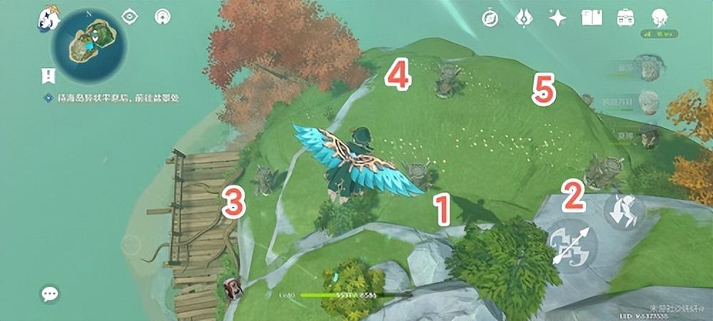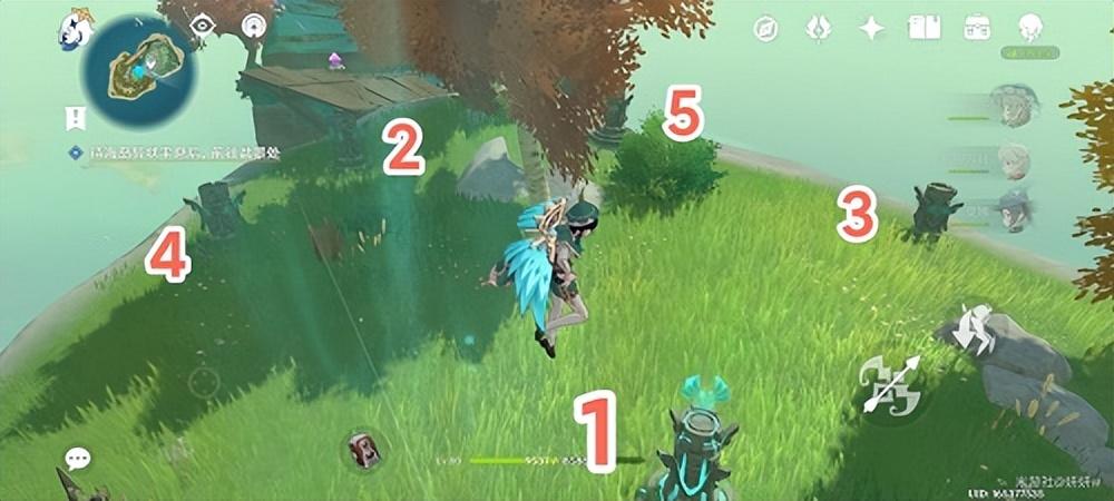 4、继续观察雷灵,右侧是什么山,它就会显示什么顺序(如果右边放了蒙德的山,就会显示风方碑的顺序)。