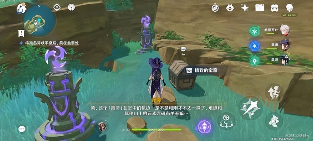 7、完成后再回到雷灵处,跟着雷灵跑,最后雷灵会回到盆景的那个小岛上,还会有一个珍贵宝箱。