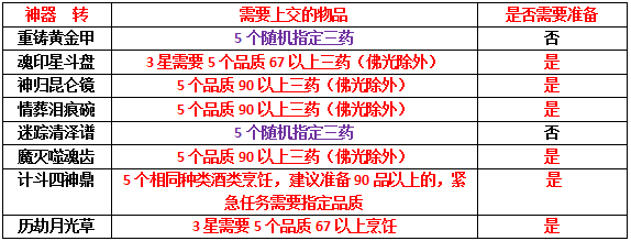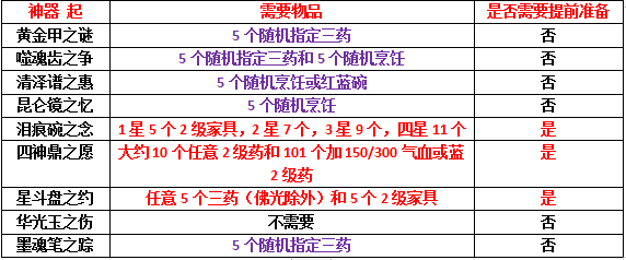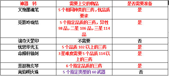 神器任务作为我们玩家每日必刷的任务,提前准备好所需物品可以提高我们的日常效率。以上就是对各神器任务需要物品的一个小总结希望能帮助到广大玩家,更效率的体验游戏的快乐!