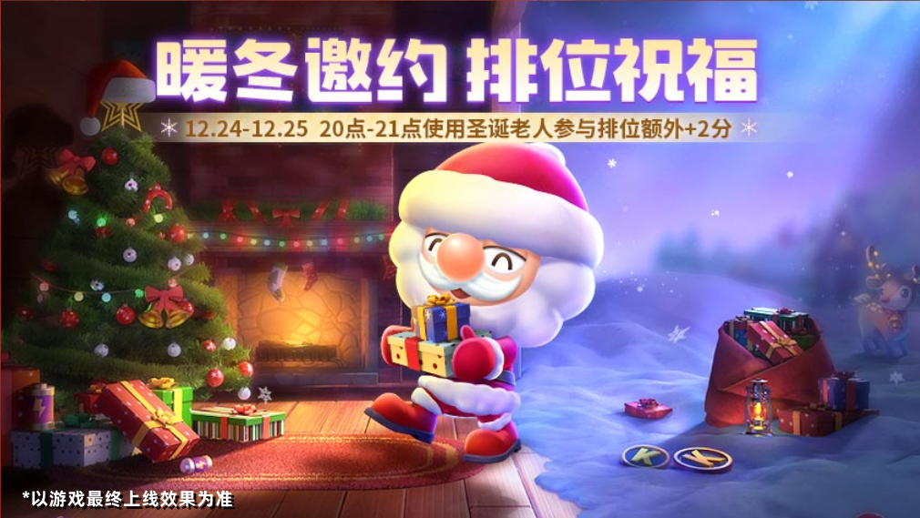 排位祝福12月24日-12月25日,每晚20点-21点将开启【暖冬邀约】排位祝福活动,车友们在活动时间内使用传说车手圣诞老人参与排位对局结算额外+2分~