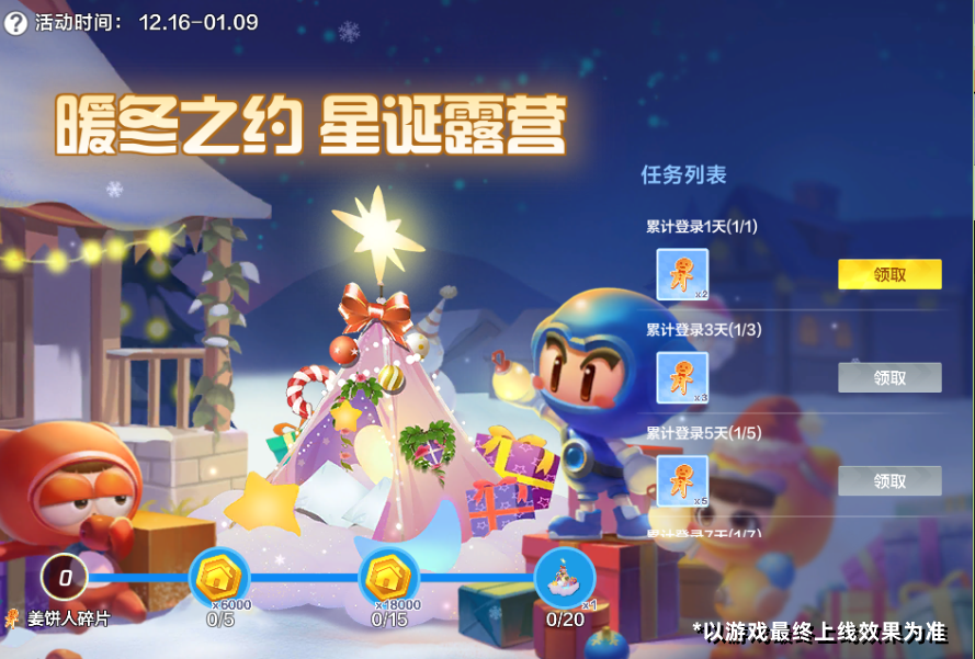 活动时间12.16-01.09活动期间收集指定数量姜饼人碎片,即可领取小屋建筑【星诞帐篷】!仿若建造于云层之上的星诞帐篷,为车友的小屋增色添彩,节日气息瞬间拉满~