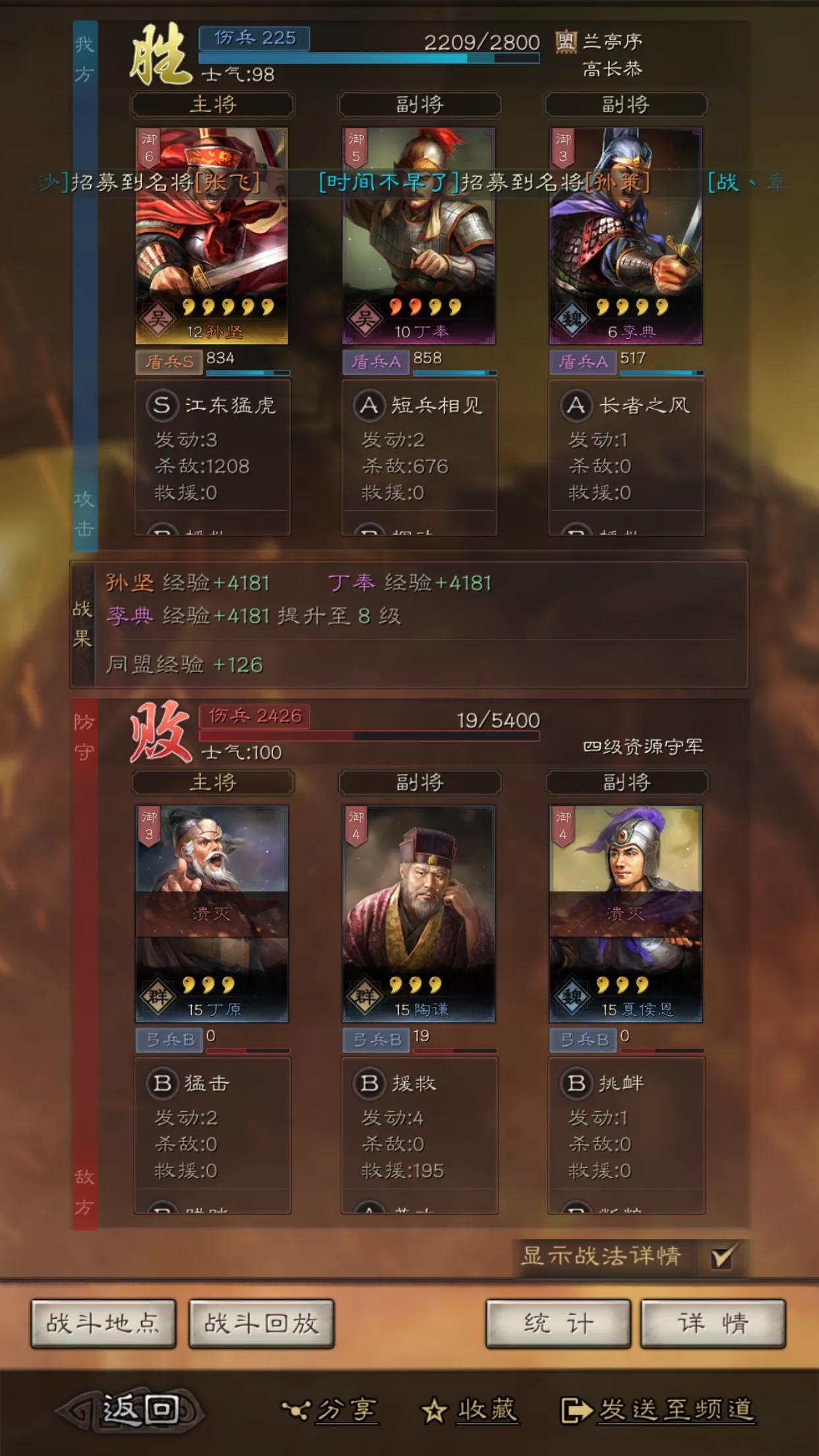但如果各位小伙伴抽取到了张宝,蔡文姬,法正,李典,可以跟关平丁奉组成三开阵容的时候,就直接在关平,丁奉,张宝各十级的时候尝试开四级地了(切记不要触碰潘凤),下面是小编的举例: