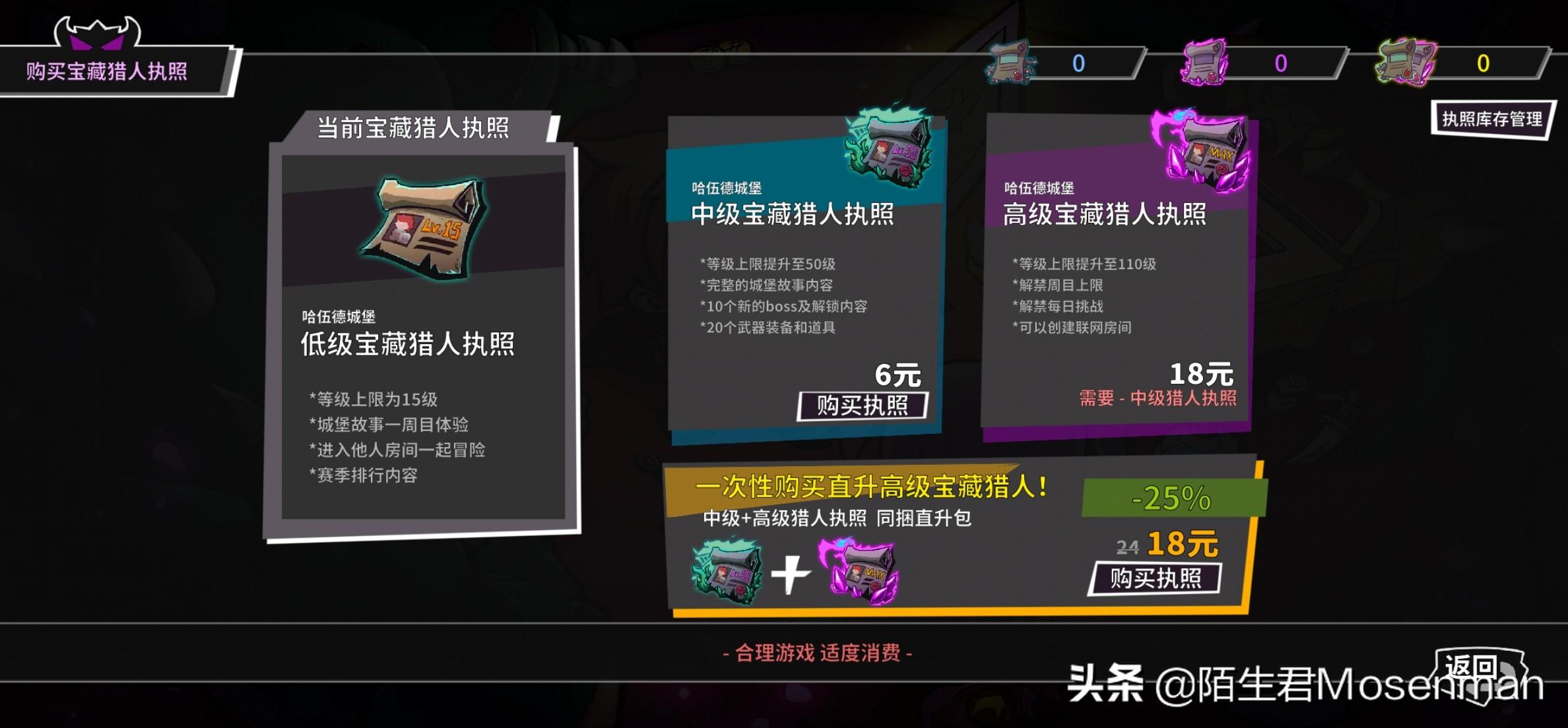 最后说说游戏的付费模式,游戏是免费游玩一周目和开放15级的技能天赋,内有无属性加成的内购皮肤,6元解锁2周目和50级的技能天赋,18元解锁所有周目和110级技能天赋。也支持18元解锁所有游玩内容。