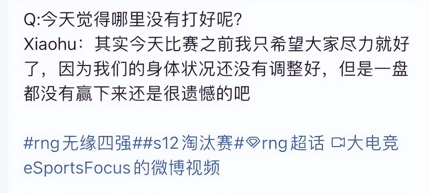 在之前的MSI上,RNG成功干碎T1加冕MSI三冠王,小WEI强势制霸野区,小虎线上压制FAKER,让大家看到了全华班崛起的希望,然而在S赛八强战的这场对决中,RNG却惨遭T1摁地摩擦,仿佛像是四大赛区队伍打外卡队,差距有点太过明显了,显然不符合之前大家对RNG的预期。而赛后小虎接受采访时,也让RNG输T1的真相公开,那就是选手们的身体状况没有调整好,这也意味着RNG没有达到最理想的竞技状态,或许成为了输T1的主要原因。