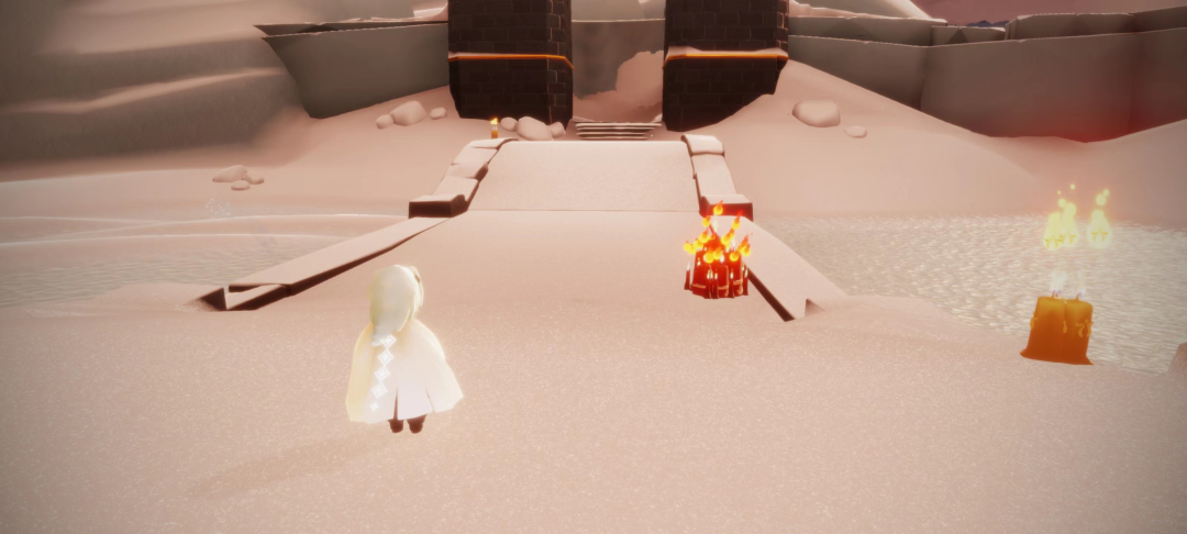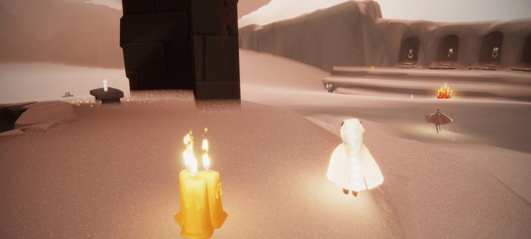 第二个季节蜡烛:我们接下来走向右手边废弃的神庙,在缺口比较大的一边就能看到第二个季节蜡烛了。