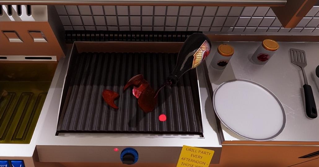 游戏的操作,靠键鼠搭配,但鼠标还是占主要部分。刀起刀落、使用厨具、撒调味品、摆盘拼盘,全然靠手抖。游戏的操作不完全符合平时游玩第一人称游戏的习惯,某些“反人类”的设计增加了少许游玩的难度,但也平添了几分沙雕的气氛。所以这款游戏很适合直播,效果拉满。但如果耐心不好的玩家,也可能被憋出火来。就像真实的料理一样,游玩这款游戏也需要经验积累。烹煮或烤制食品,加水和撒调料,也需要掐时间或判断量。