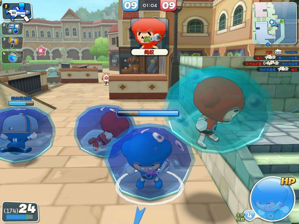 游戏特色,几大模式:本作是一款没有暴力和死亡的绿色网游,新颖独创“泡封、击爆”的特色玩法;玩家在战斗中通过 泡封 / 击爆 / 营救等战斗要素进行比赛,即使玩家被敌方攻击也不致命,而是被封在一个大大的水泡内,只要同伴前来营救就可以获得重生。不过如果被封在泡泡里时被敌人“击爆”,那就只能回到起点重新进入战场;通常一局游戏绝大多数采用8人分组4vs4对抗,但双方人数必须一致,否则无法开始比赛。回合战是3局2胜制的一种比赛,只有竞技模式、热血团队模式、斗神战模式可以选择。