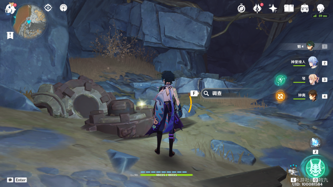 到达图中的位置我们需要引爆附近的丘丘萨满棍子就可以将墙体破坏掉。走进去可以看到血泪的弄臣,击败即可获取宝珠。