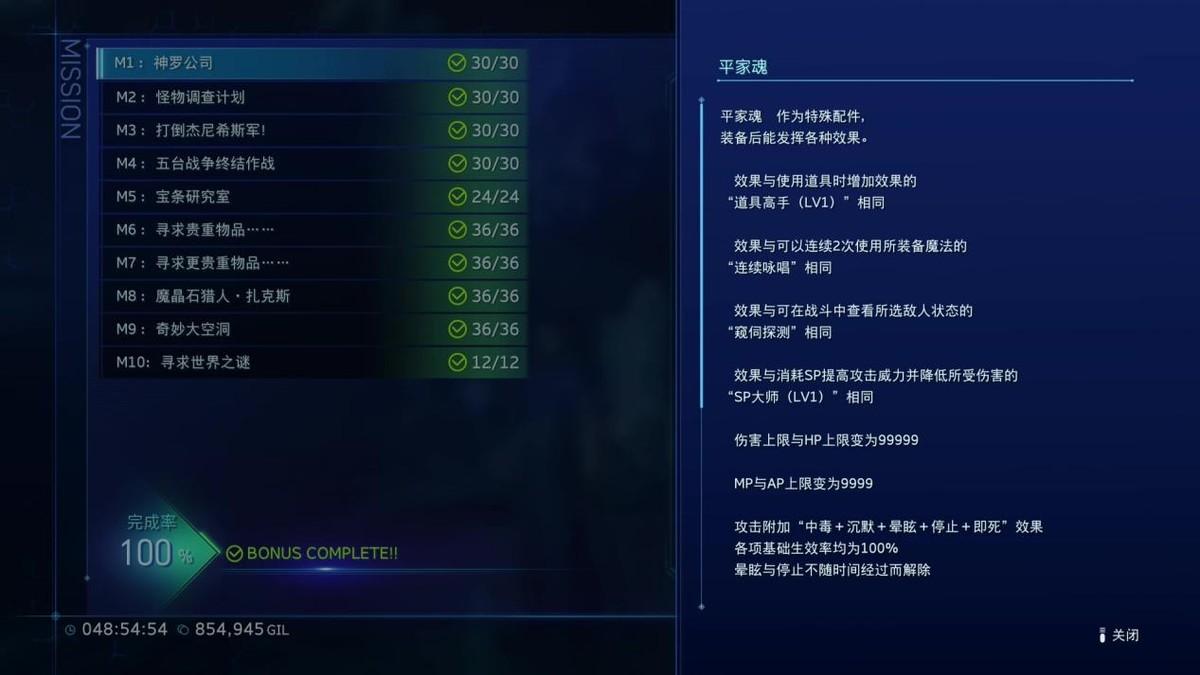 我的建议是,如果你只想体验剧情的话,完成主线、宝藏猎人支线(尤菲相关)、任务10系列(海边任务,有主线没有的新地图,西斯妮的DMW剧情也有相关),完成整个Mission纯粹的在浪费生命,甚至还有千人斩这种无聊的任务,不停刷低级怪打得我差点睡着了。