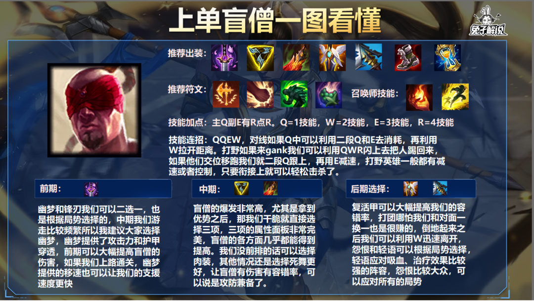 大家好,我是兔子攻略组的大马猴。最近发现了一个正在浮出水面的一个盲僧新玩法,对于一些上单玩家来说是一个很好的消息,我试了很多局,发现目前上单盲僧是非常强的,盲僧的强度在上路完全可以成为T1及以上的存在。