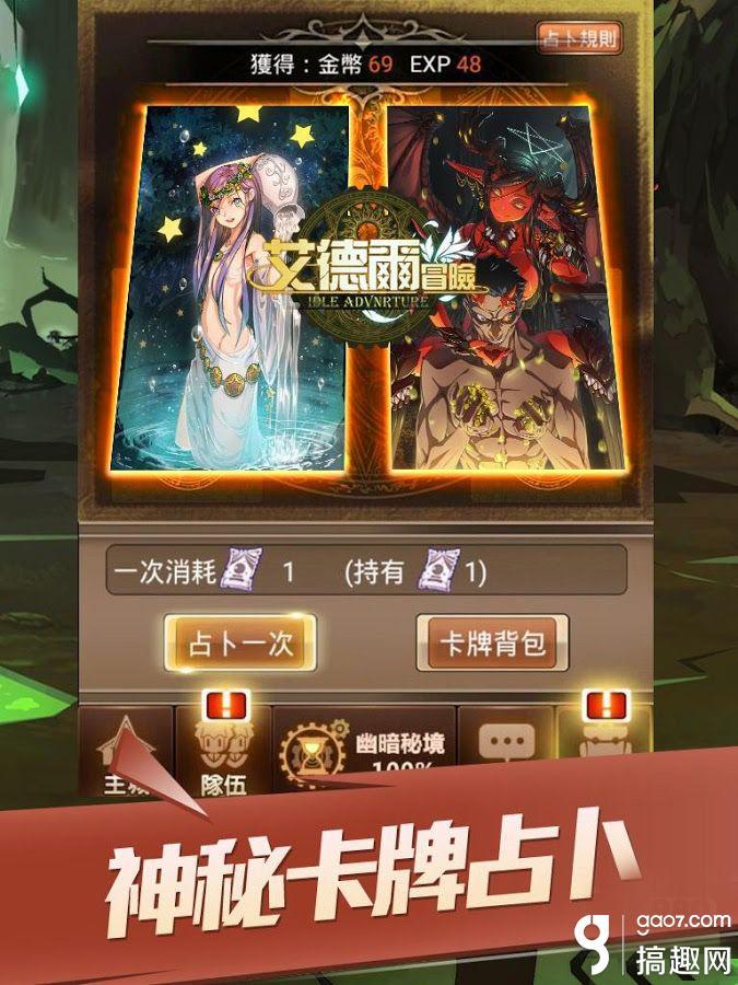 游戏中除了依旧保持了传统的放置类玩法之外,还新增了挑战BOSS获取塔罗牌碎片的迷失之地,以及供玩家自由竞技的竞技场,更甚至于玩家们还能够加入公会挑战巨龙秘境。虽然游戏玩到中后期的时候,简单的挂机也许会让有些玩家感觉稍显枯燥,但是i苹果助手小编告诉大家无需恐慌,游戏已经想到解决方案了。竞技场、BOSS挑战等玩法的适时加入终于是弥补了这项不足。如果有的玩家觉得中规中矩玩游戏进程太慢的话,那就购买钻石进行快速战斗,以及BOSS扫荡来获取更多的奖励和经验值咯。