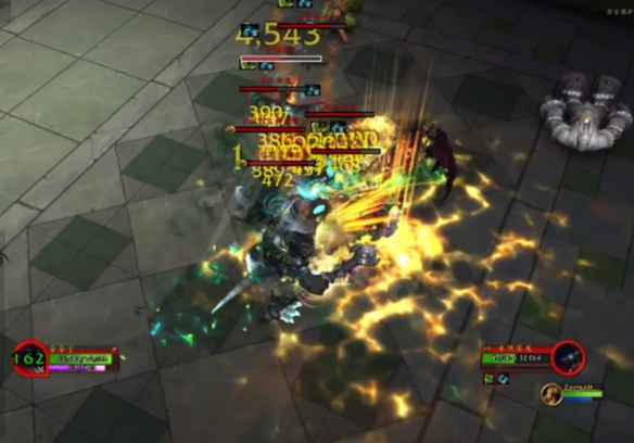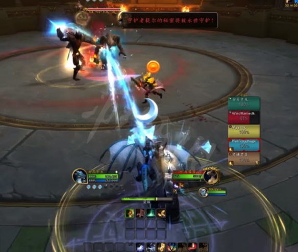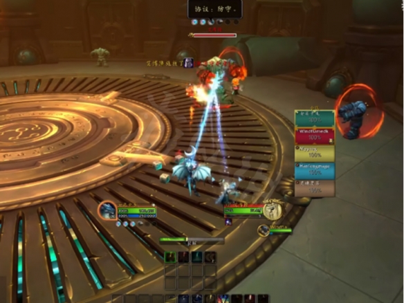 战斗开始,建议把艾博隆拉在2个被选中的守护者身边。在P1时,艾博隆会使用灼烧轰击,对面前所有敌人造成高伤害,请坦克注意不要面向人群
