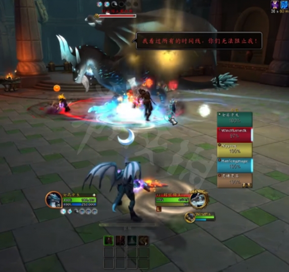 阶段1:时空领主会不断的召唤永恒宝珠落下。玩家进入宝珠范围会受到高额伤害,并降低30%的急速。此外,他还会读条飞翼打击,击退所有玩家,和宝珠组成连招:请小心不要被击退进宝珠。