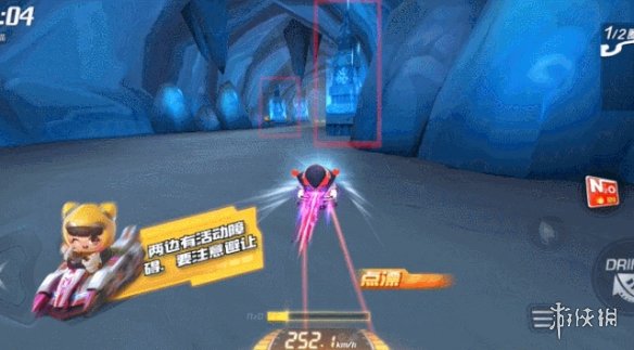 这个路段设有路障,通过此处的车友们需要注意避让,以免撞上损失大量时间,影响成绩。