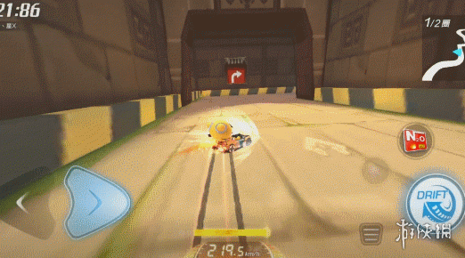 想要顺利通过这个Z型弯道,首先要提前从外侧起漂增大入弯角度,入弯后松开漂移键并且立刻往左漂移,只要入弯的角度找准了,过这个弯道也是一气呵成的事情。