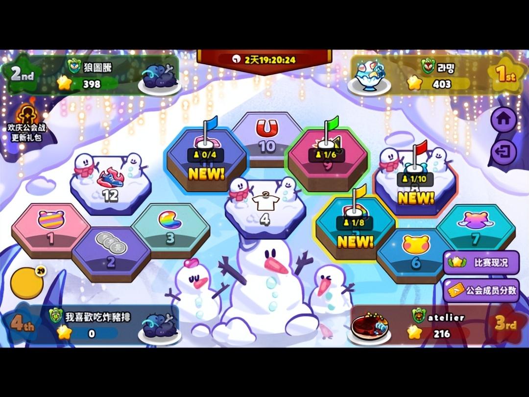 而《跑跑姜饼人》反其道而行之,推出了众多的社交性玩法。比如公会战就需要玩家在指定的地图和限定的时间内,利用限定的角色和等级进行游戏,最后的分数计算也取决于所有玩家的前五名分数总和,并以此来进行排名;而奖杯赛则是匹配同奖杯数的10名玩家,自选两名角色、三个宝物和一个宠物在相同地图和限定时间内进行比赛,时间结束后进行统一排名。
