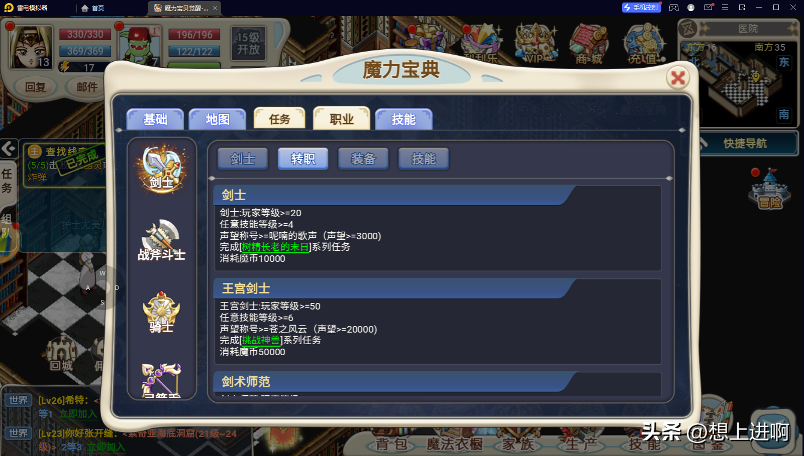 王宫剑士:玩家等级>=50任意技能等级>=6声望称号>=苍之风云 (声望>=20000)完成[挑战神兽]系列任务消耗魔币50000