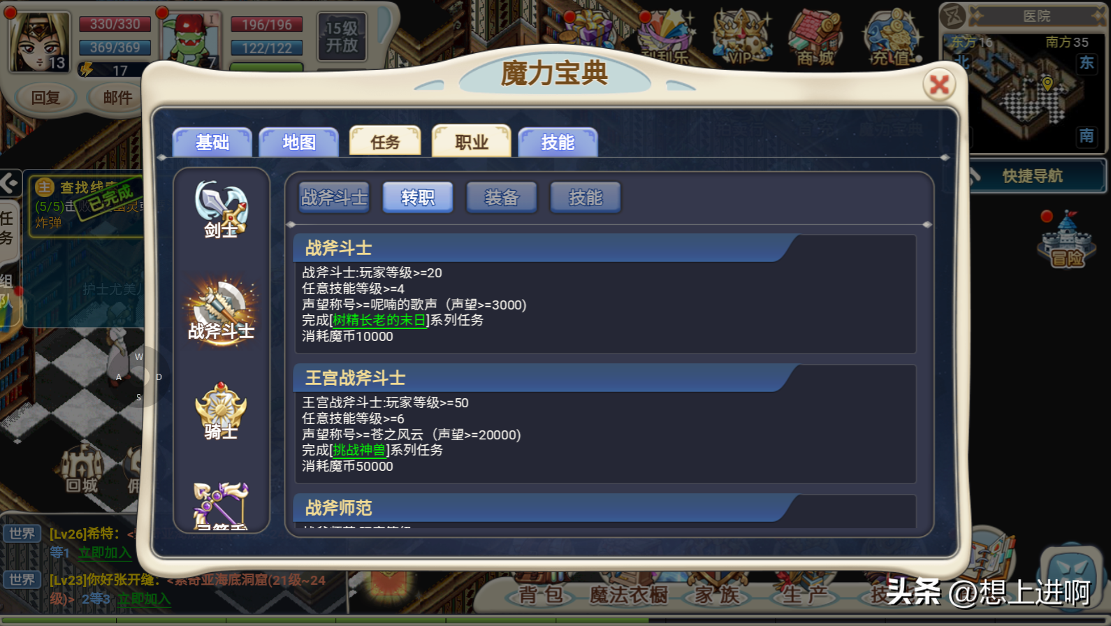 王宫战斧斗士:玩家等级>=50任意技能等级>=6声望称号>=苍之风云 (声望>=20000)完成[挑战神兽]系列任务消耗魔币50000
