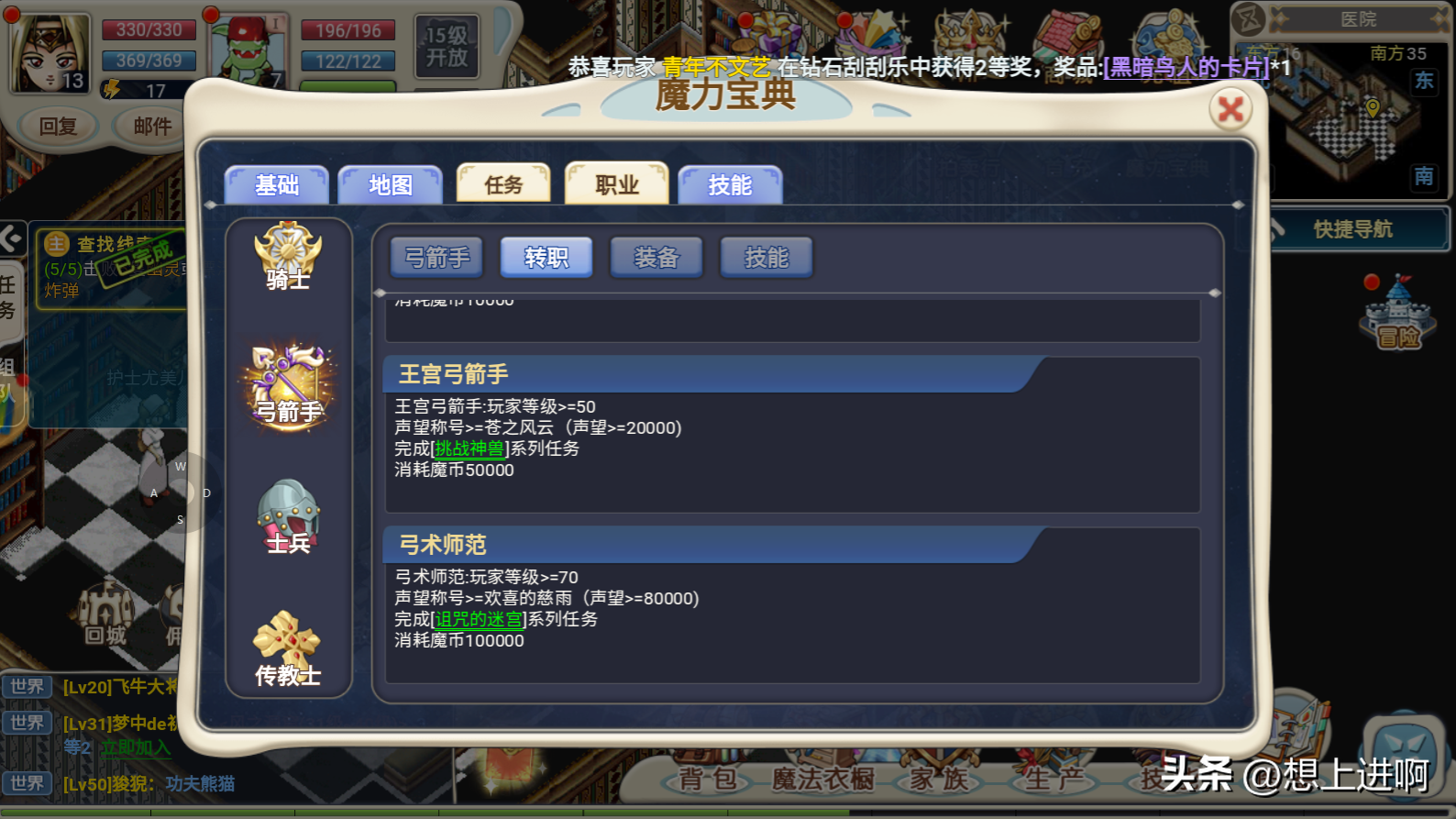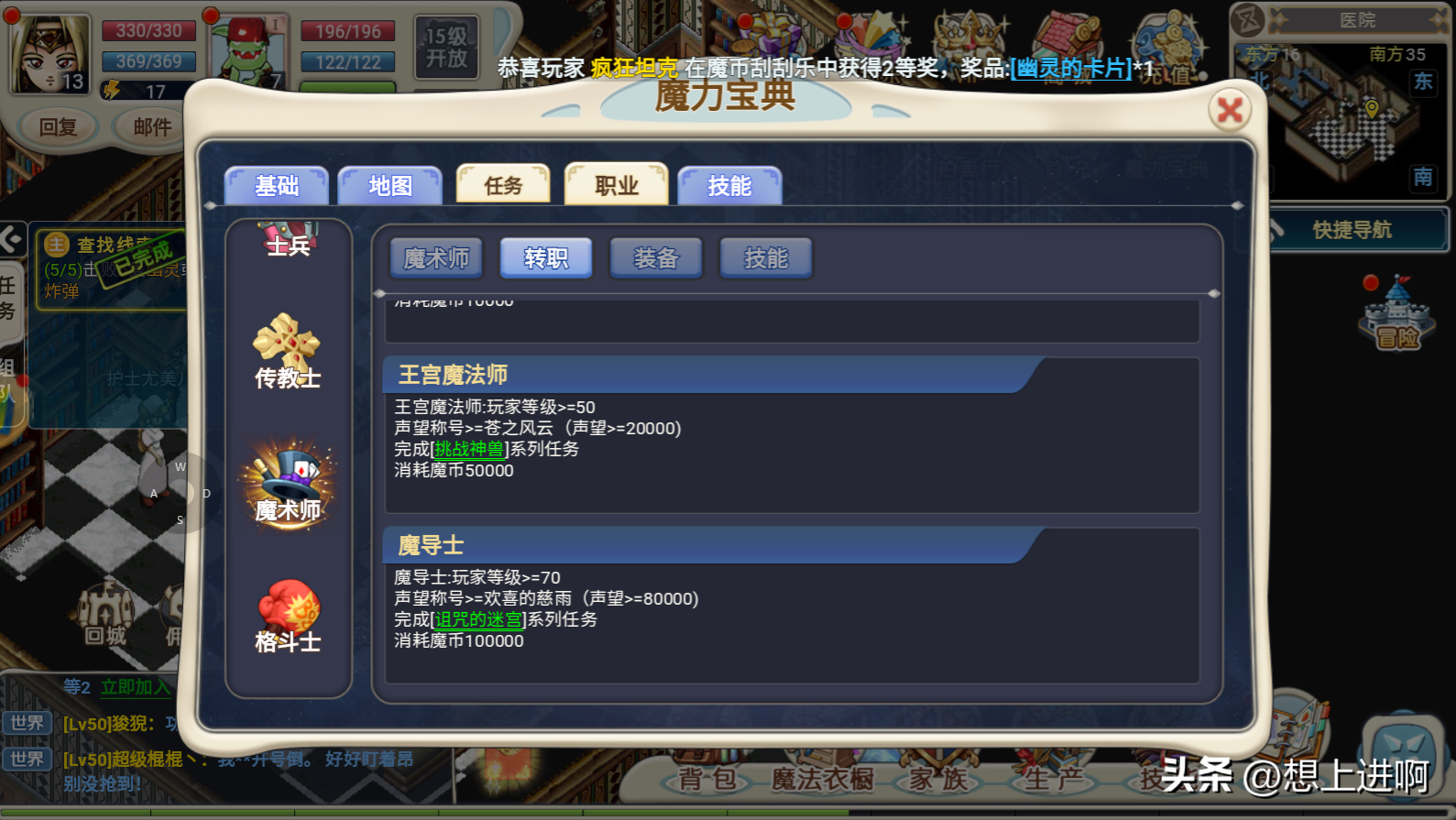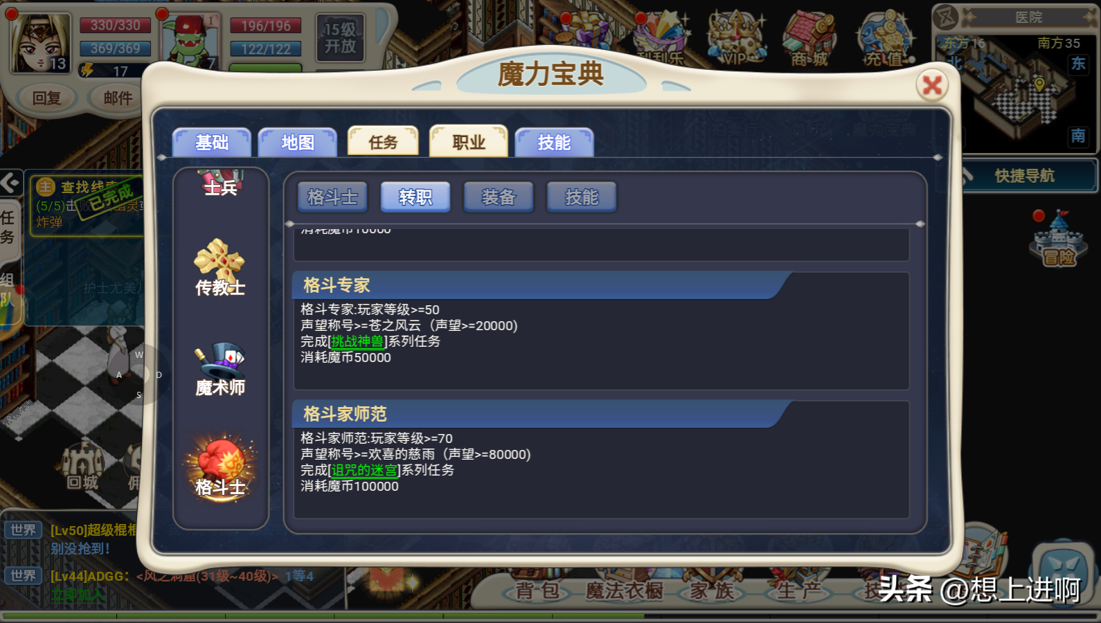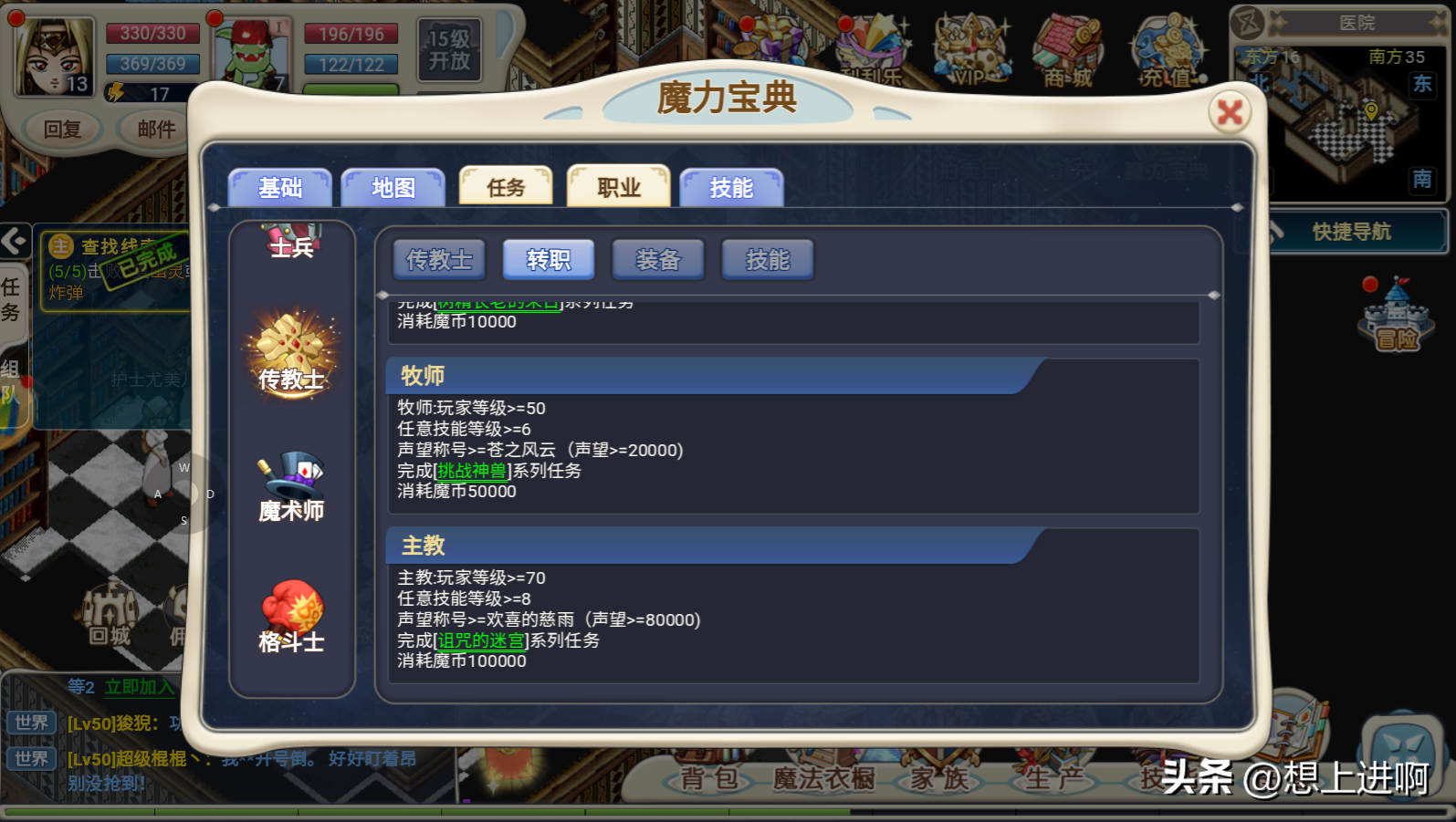 牧师:玩家等级>=50任意技能等级>=6声望称号>=苍之风云 (声望>=20000)完成[挑战神兽]系列任务消耗魔币50000