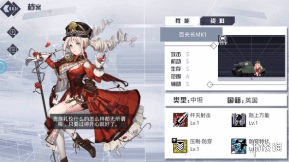 英国国籍的中坦克,拥有不错机动性和高强度火力,拥有强力的对空能力和反步兵能力是一个很强的反克制型的角色,除了对坦克不是很强以外都很强。防空特化、陆上万能、压制防穿都是很强的功能性技能,在任何一个队伍中都能够发挥出自己的实力,十分万金油的一个角色,适合普通非氪玩家培养。