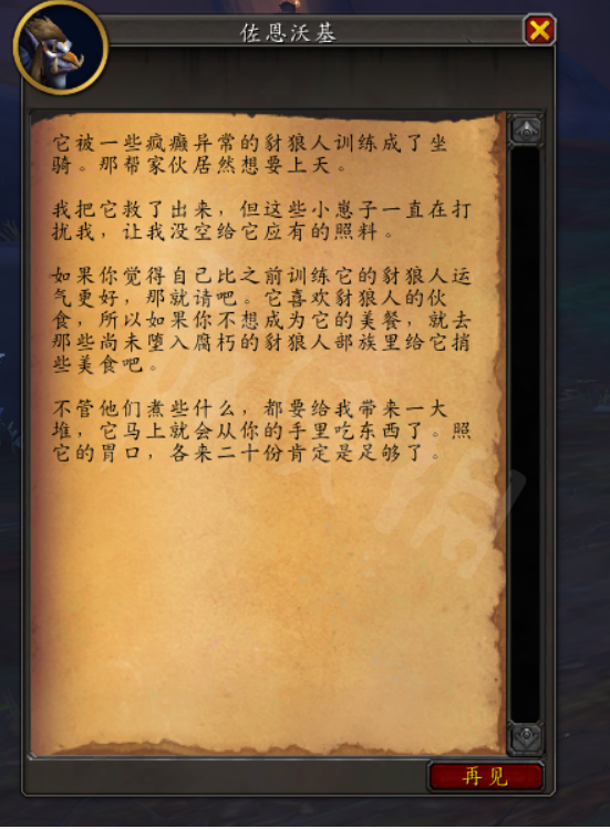 佐恩沃基要求我们去碧蓝林海东部尚未腐朽的豺狼人那里夺取一些食物给它,每样20份。
