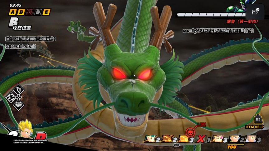 比如,作为一款“龙珠”漫改游戏,玩家当然也可以在本作中收集龙珠,召唤神龙并满足自己的一个愿望。但有趣的是,如果是幸存者玩家阵营召唤出了神龙,愿望需要在“将自己的能量提升至四级”和“让所有队友的能量提升一级”间做出选择:是让自己一人化身英雄,拯救全场?还是有福同享,大家一同对反派展开车轮战?这样的机制设计,无疑是对玩家的合作意识的一次考验。