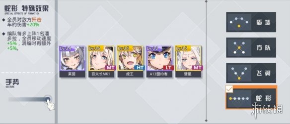 蛇形是一套针对歼击车的阵型,不仅有着对歼击车额外的伤害加成,还增加了全队的灵活机动性。在面对以歼击车为主力的敌军时,使用蛇形阵型会为全队带来极高的收益哦~