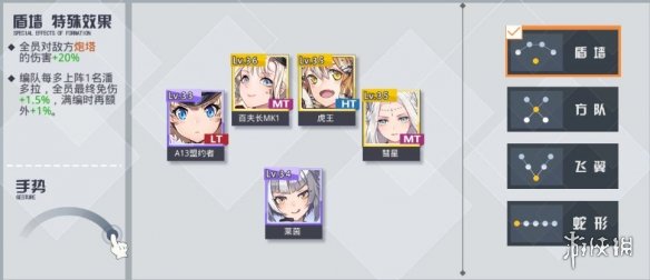 盾墙对编队潘多拉的输出增益有大幅加成!除此之外,它还有不错的免伤效果哦~ 盾墙阵型可以为队长提供非常大的保护,极大的提高队长的生存率! 喜欢稳健打法的指挥官们,来试试盾墙阵型吧~