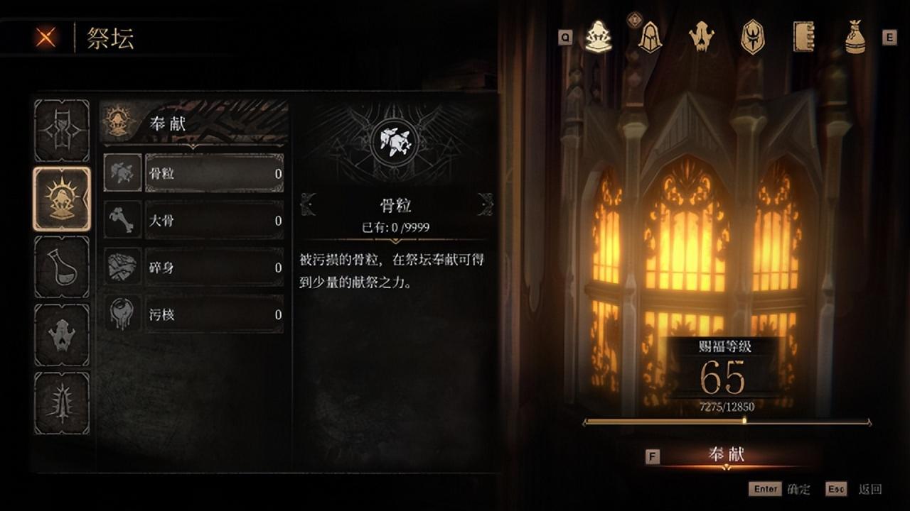 玩家需要在游戏中收集不同等级的秽石,在祭坛点亮天赋。