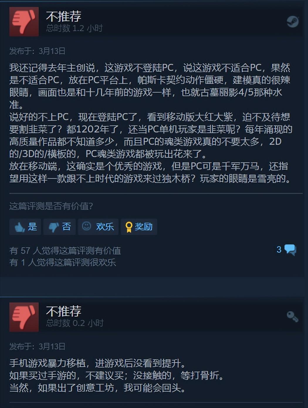 当然,这也不可避免的让玩过手游版本的玩家们感到不满和不值。