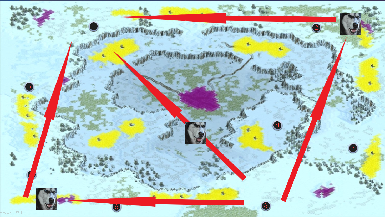 (1)狗子探路:在前期狗子探路时,大部分地图都是矩形(如冰天雪地),假设出生在左下角,就需要三条狗分别向上再向左,向左再向上,和中路直奔对手基地。又或者小地图需要探开自己周围一圈等等,通过设置路径可以让每一条狗只经历一次操作,简化操作步骤让自己有更快的速度去发展自己的家里面。