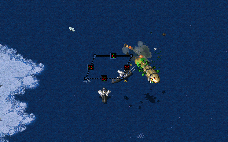 (3)增强火力:我们都知道盟军的神盾巡洋舰是基洛夫的天然克星,如果在手动攻击的同时一直按停止键位“s”就可以通过卡攻速更快速的击落对手的基洛夫。但意想不到的是在设置了循环路径后的神盾竟然会自己卡攻速,攻击的导弹更加密集,可以更好地防止对手的空军力量。