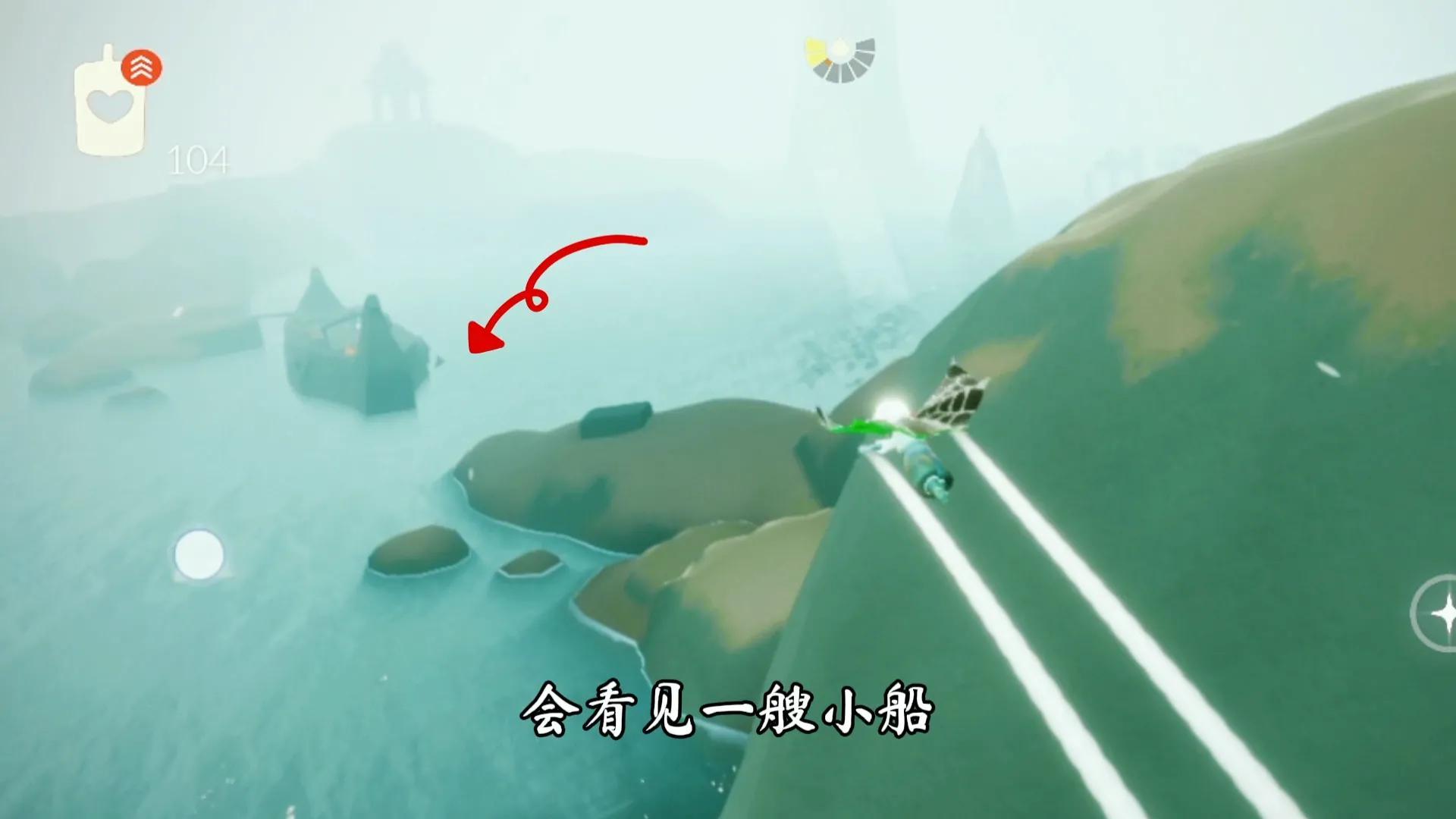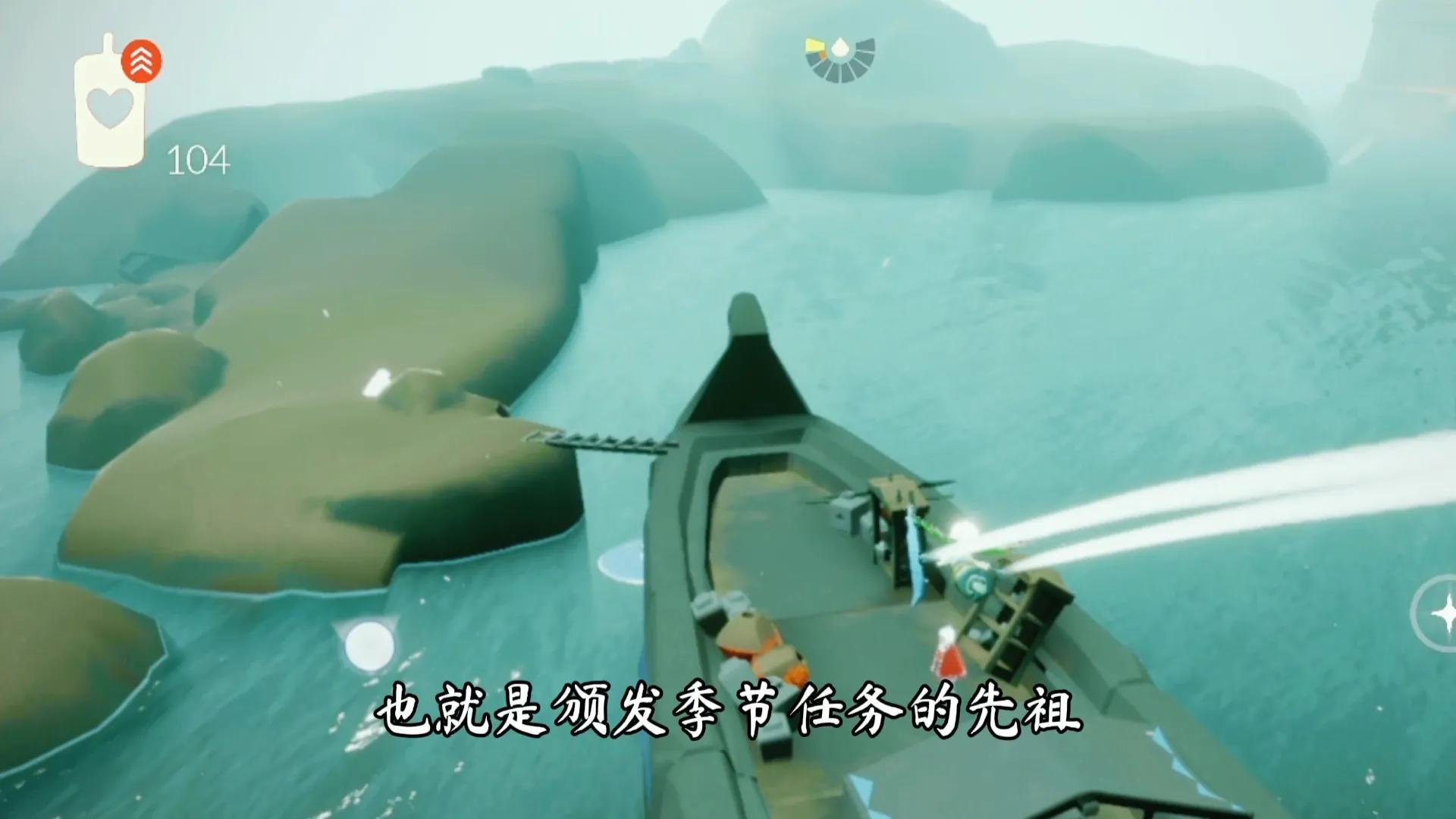 进入季节地图后向左侧飞,左侧有季节先祖的小船。