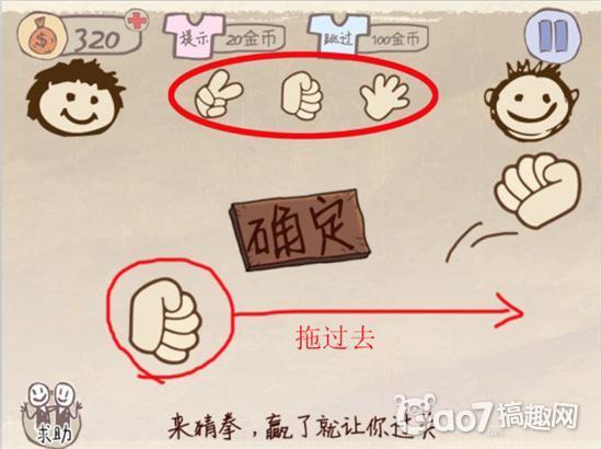 第一步点击上方的锤子剪刀布任意一个,然后将我们出的结果和对面调换。再点击上方的破解方案然后点击确定即可通关。其实就是自己和自己玩
