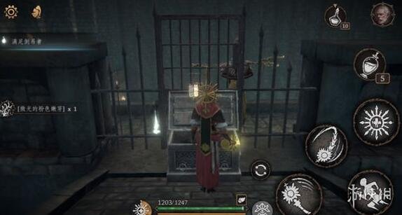 之后继续推进主线剧情,帮疯子降下牢笼后,触发主线帮疯子打开囚牢,这个时候的囚牢已经被打开了,往下探索开启机关放另外一个囚牢下去,下去之后可以看到一个堆叠空牢笼的洞口,进去洞口可以看到一个箱子,打开获得第二个任务道具微光的粉色嫩芽。