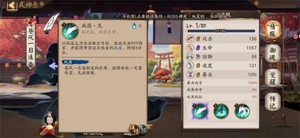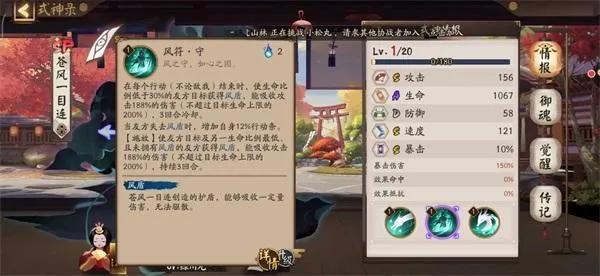 我们如果想要知道“半输出半辅助”苍风一目连的御魂该怎么搭配,首先需要知道他的技能: