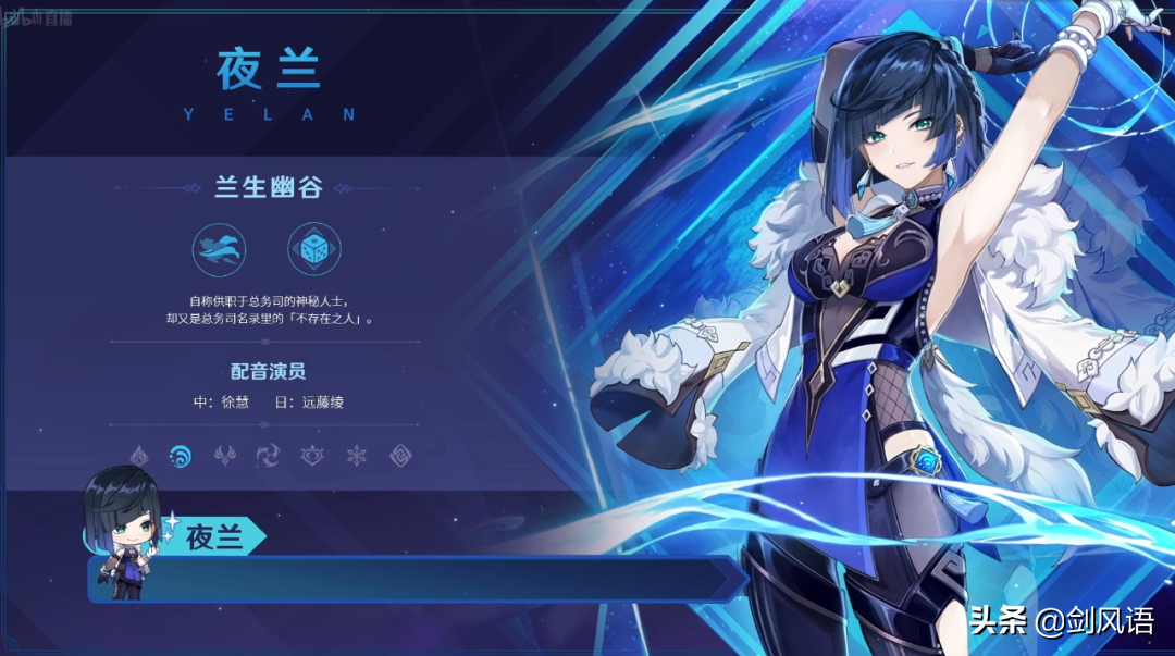 夜兰(五星、弓箭手、水元素),定位水系副C。