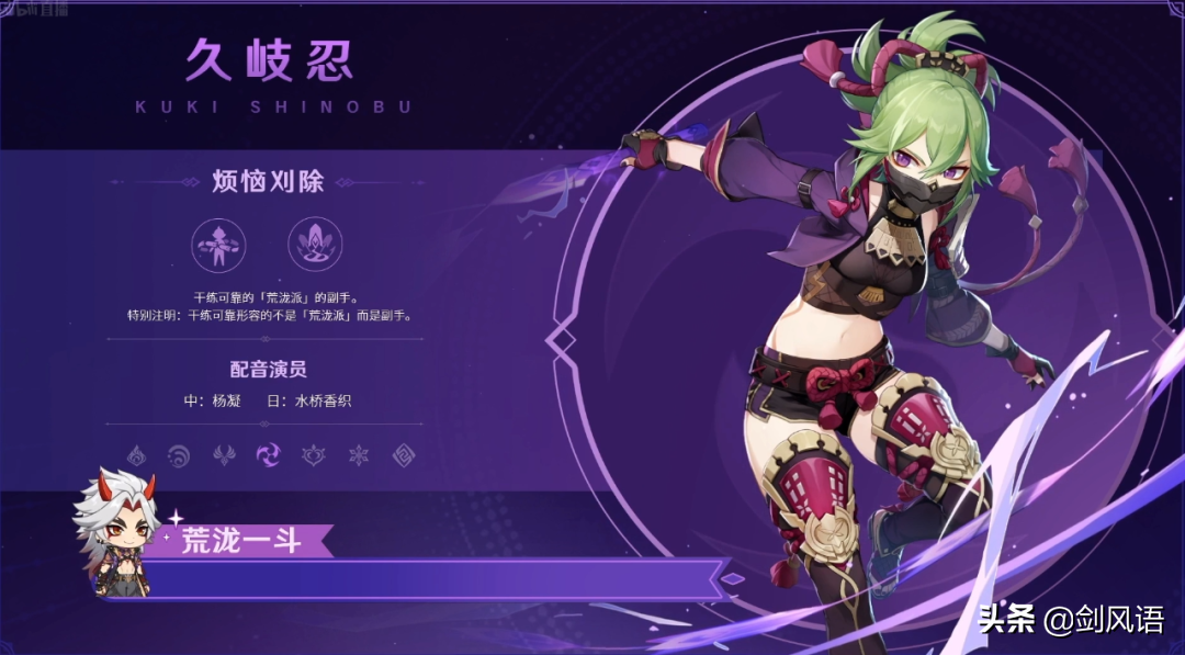 久岐忍(四星、单手剑、雷元素),定位雷系辅助奶妈。
