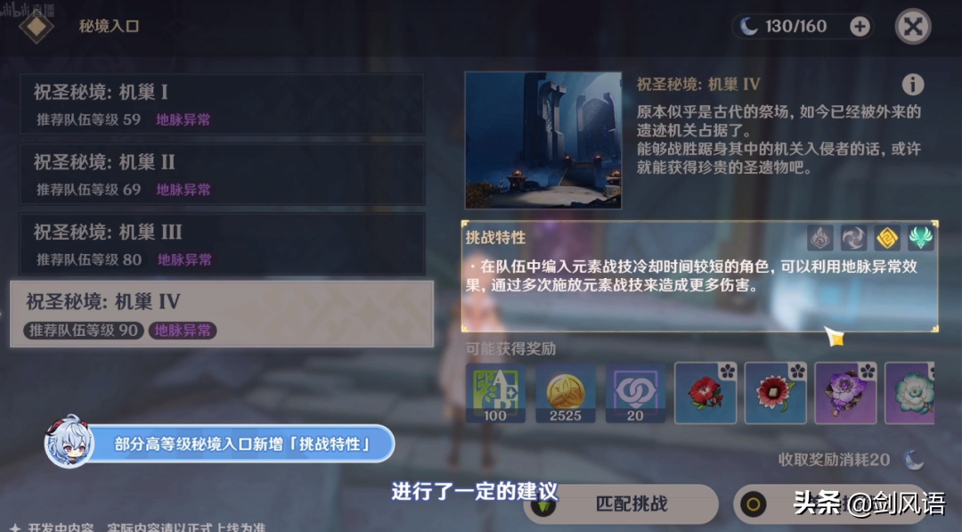 1.高等级圣遗物副本增加“挑战特性”。方便选择好的角色阵容挑战副本。