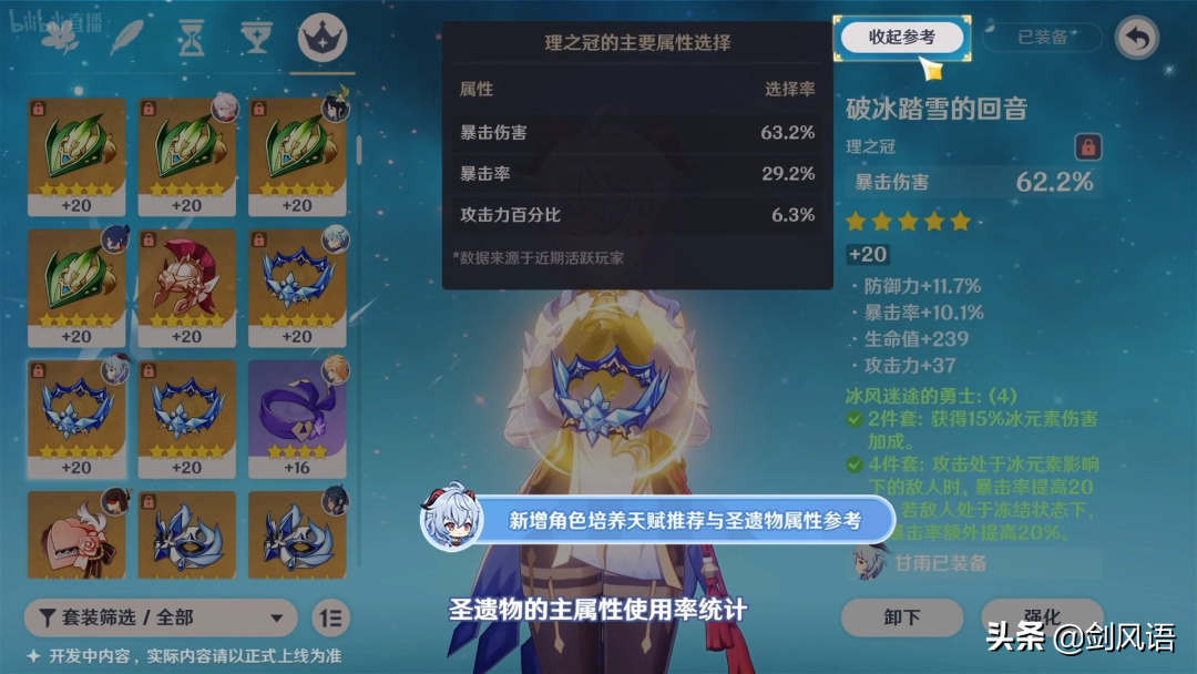 2.角色养成界面增加“天赋养成参考”和“圣遗物养成推荐”,这个优化对萌新玩家比较友好。