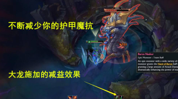 大龙(纳什男爵):击杀大龙能够强化小兵进行快速推塔。大龙在游戏10分钟出现,大龙的刷新时间是3分钟。