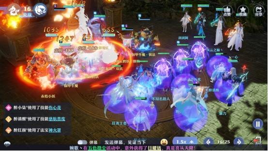 倒数第一回合时继续保持BUFF的更新,然后使用玉净瓶覆盖最左侧九宫格区域,紫玉葫覆盖中间兽神位置区域,其他门派可以根据灵兽和队伍主打元素来使用法宝塑造元素地表,并收割最后残留的怪物。