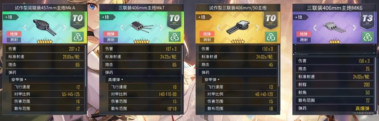 主要是看调速,配合大炮队的话,得保证每一炮的cd要配合上大炮队,由于装填比约克公爵高出很多,还有装填的buff,所以主炮的选择没有像约克公爵那么难选,前卫和花园带一样的炮即可。