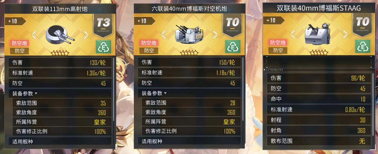 因为满足特效的话需要带皇家装备,在防空炮上下手即可,113圆盘、六联博福斯、双联博福斯都是可以的。